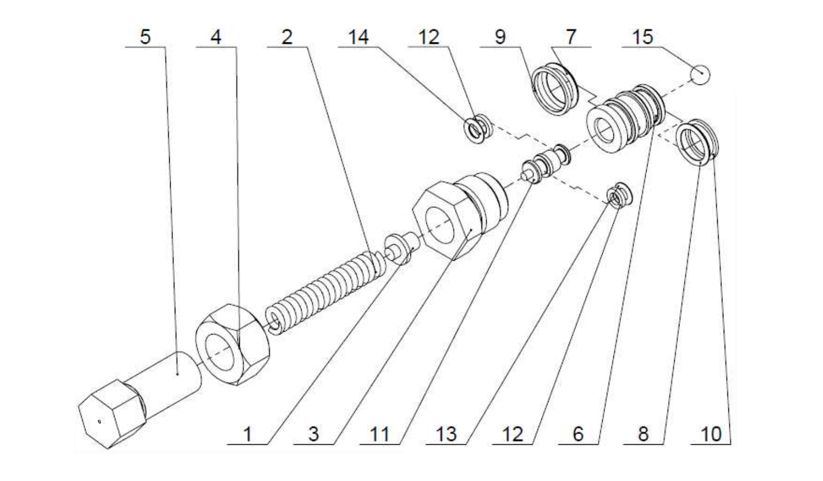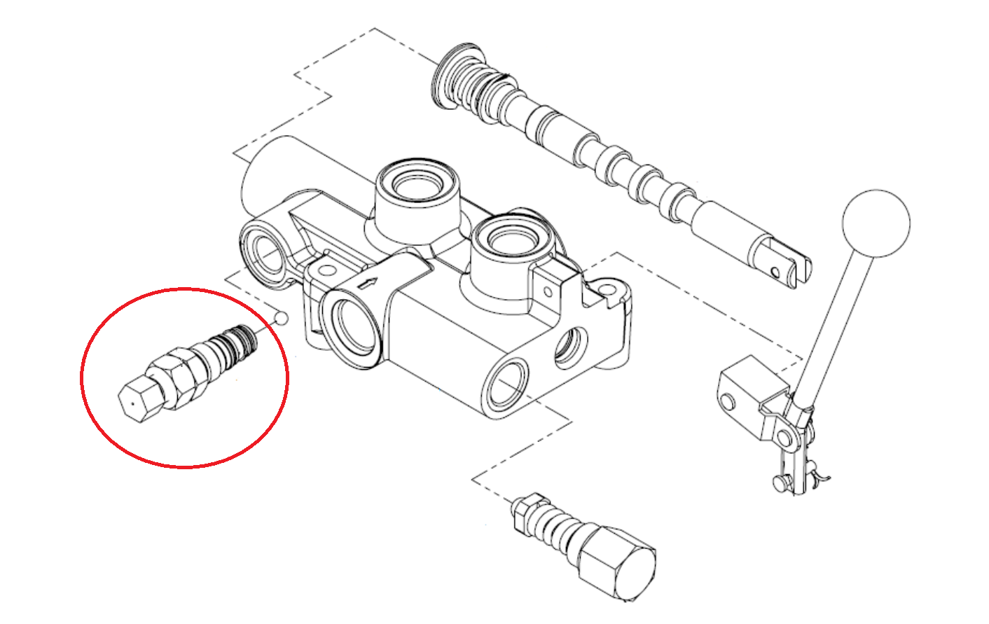 El pasador de liberación de presión permite un sistema de liberación de presión (retorno automático de la palanca de control a la posición neutral). Cuando el carrete se mueve hacia el sistema de liberación de presión, el aceite se desvía hacia el puerto de trabajo "B" (alejándose de la palanca). Cuando la presión en el puerto "B" excede el valor establecido, el pasador de liberación de presión libera la palanca de control para que vuelva a la posición neutral. La configuración de fábrica es de 70 bar. El pasador de liberación de presión es ajustable aflojando la tuerca (4) y girando el tornillo de ajuste (5). Girar el tornillo en sentido horario aumenta el ajuste de presión del pasador de liberación de presión, mientras que girarlo en sentido antihorario reduce la presión.