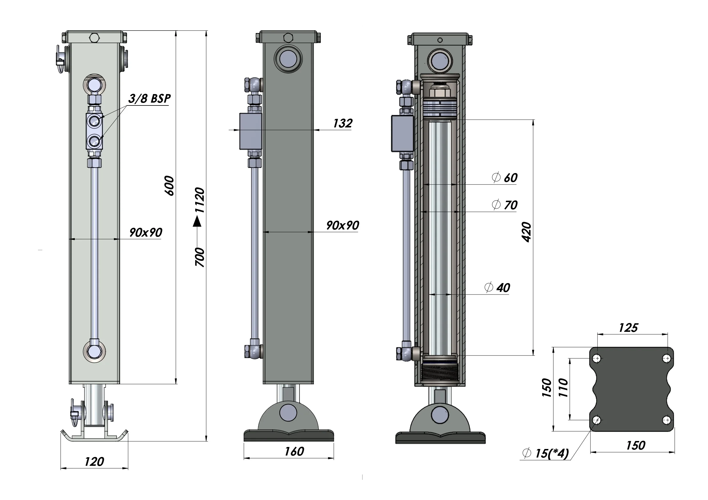 DVOSMERNA HIDRAVLIČNA PODPORNA NOGA (90x90x700 mm) - HOD 420 mm - 2.500 kg