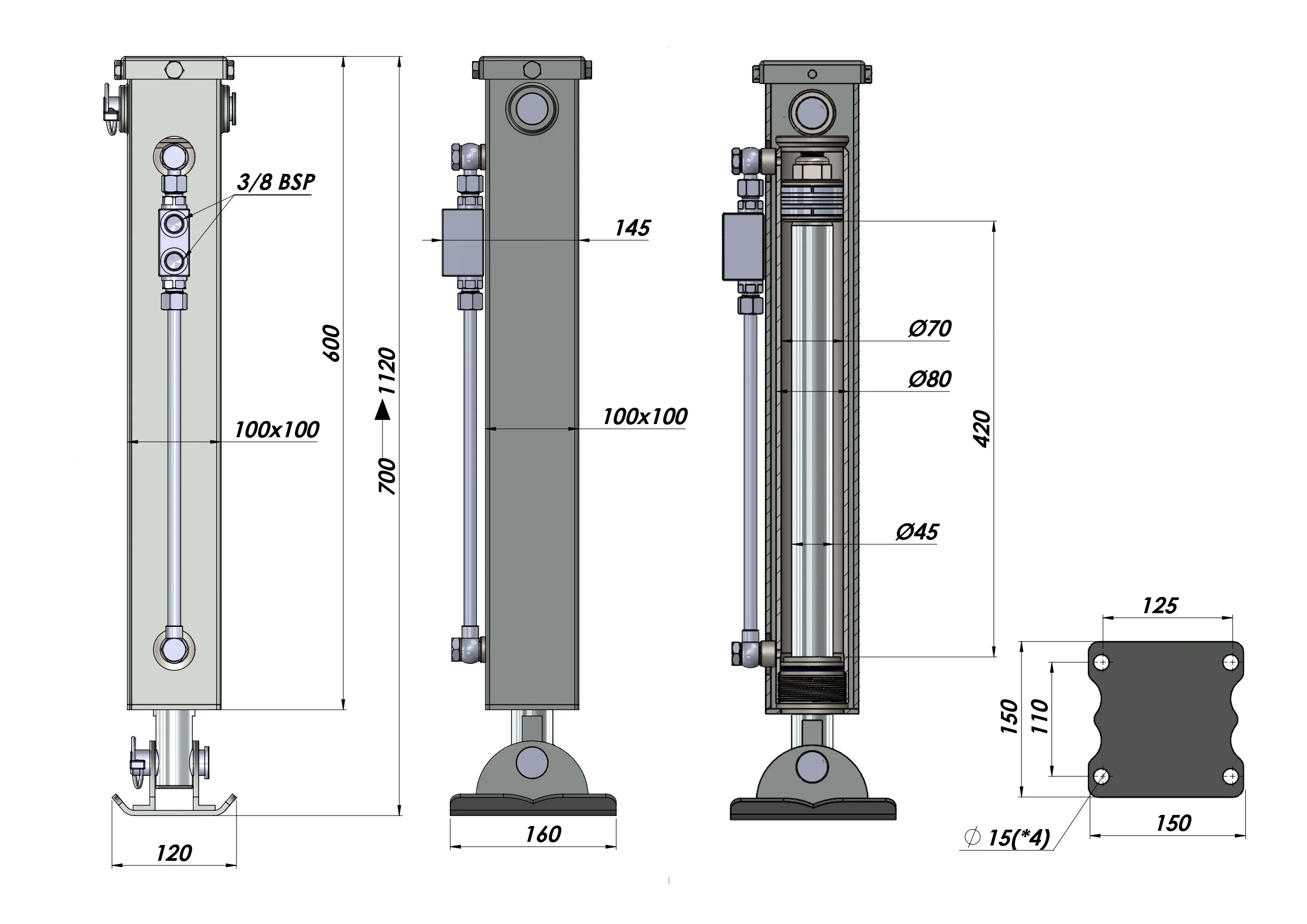 DVOSMERNA HIDRAVLIČNA PODPORNA NOGA (100x100x700 mm) - HOD 420 mm - 5.000 kg